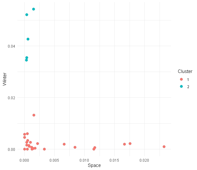 km_model_space_winter <- kmeans(category_data[, c('frequency_space', 'frequency_winter')], centers = 2)