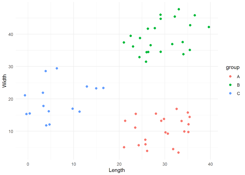 Points should be coloured by group