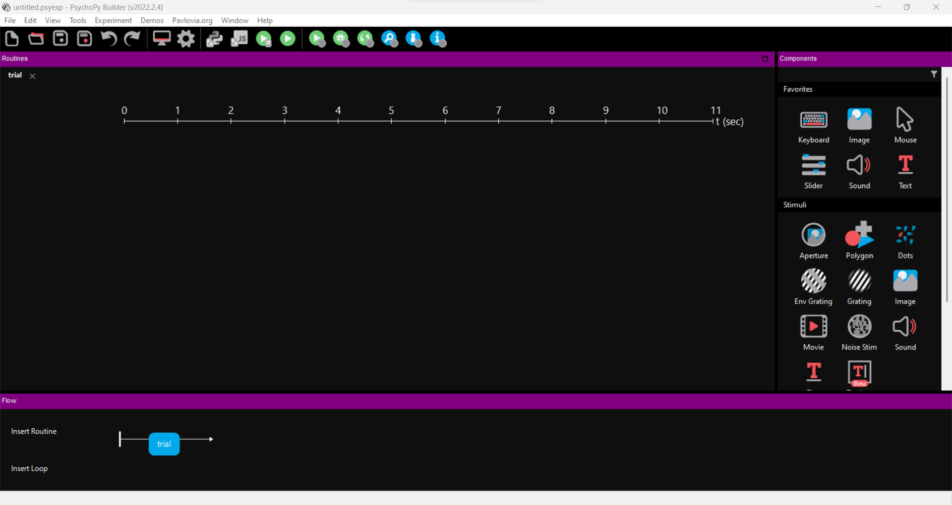We add a code component to the trial routine. The code goes in the begin routine tab of the component